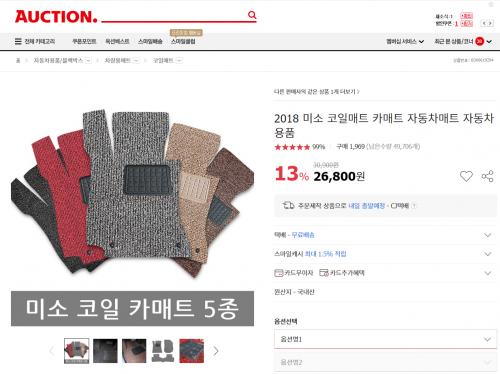 [옥션] 2018 미소 코일매트 카매트 자동차매트 자동차용품 (26,800원/무료배송)