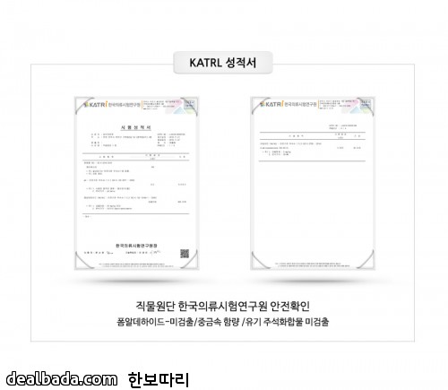 또, 주 사용타켓이 어린이인만큼, 의류시험연구원에서 안전 확인을 받은 원단으로 제작하였구요!