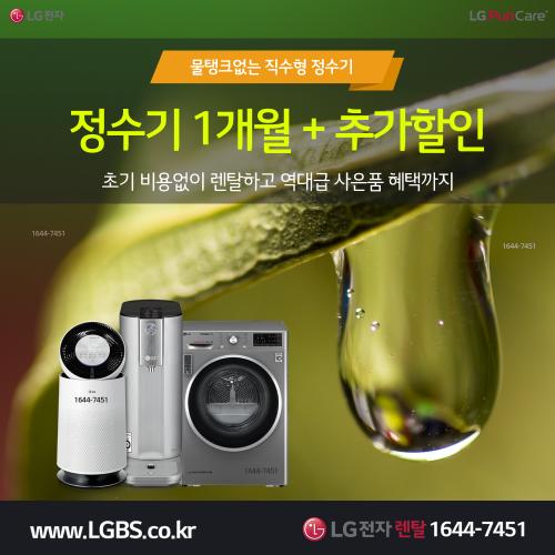 - 직수정수기 1개월 무료 / 장기요금할인 (3개월 방문케어, 매년 직수관 무상교체)
