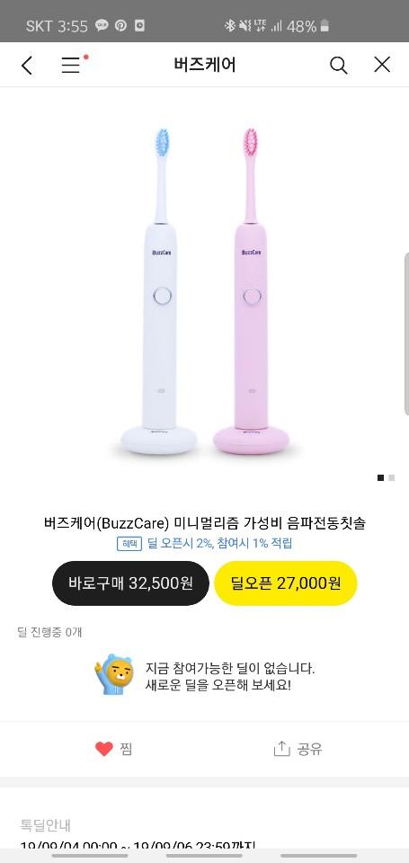 가성비甲 음파전동칫솔 버즈케어 구매해보세요~!!