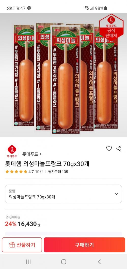[롯데ON] 롯데햄 의성마늘프랑크 70gx30개15,940원 > 상품홍보