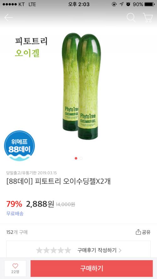 [위메프] [88데이] 피토트리 오이수딩젤X2개 (2,888원/배송비) > 상품홍보