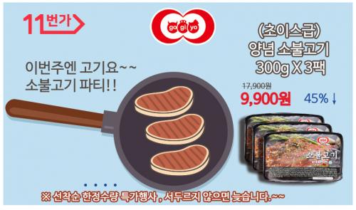 [11번가] 고기요 양념 소불고기 300g*3팩 [초이스급 소고기] (9,900/무료배송) > 상품홍보