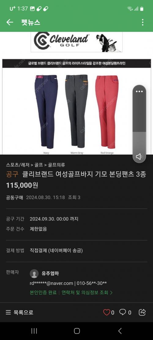 [네이버] 클리브랜드 여성골프바지 기모 본딩팬츠 3종 (115,000원/배송비무료)