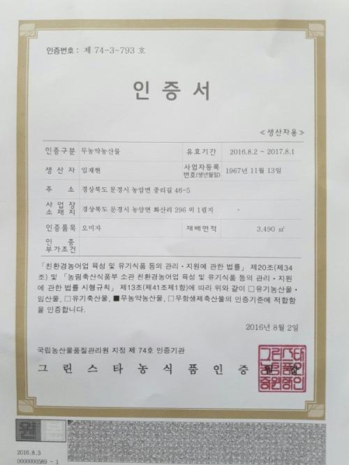 좀더 많은 수확을 할 수 있는 데도 불구하고 유기농으로 재배하고 오미자청으로 가공하실때에도 유기농 설탕을