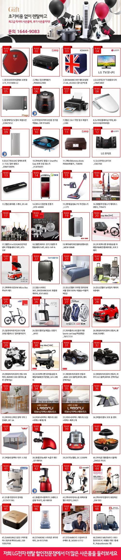 렌탈상품 : 정수기, 공기청정기, 안마의자, 생활가전, 스타일러, 건조기