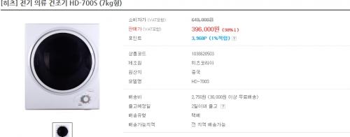 [아이마켓] [히츠] 전기 의류 건조기 HD-700S (7kg형) (396,000원/무료배송) > 상품홍보
