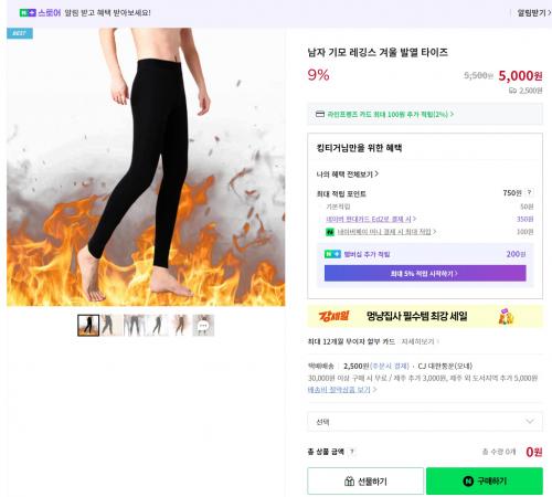 남자 기모 레깅스 겨울 발열 타이즈
