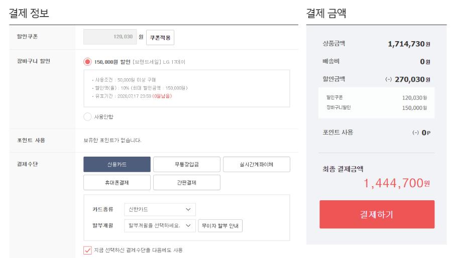 => 결제 전, 쿠폰 다운 받기를 클릭 후 결제 정보에서 적용해 주셔야 합니다.