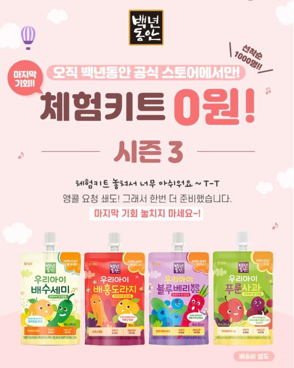 샘표 백년동안 우리아이 건강즙 체험키트 4팩에 0원!!