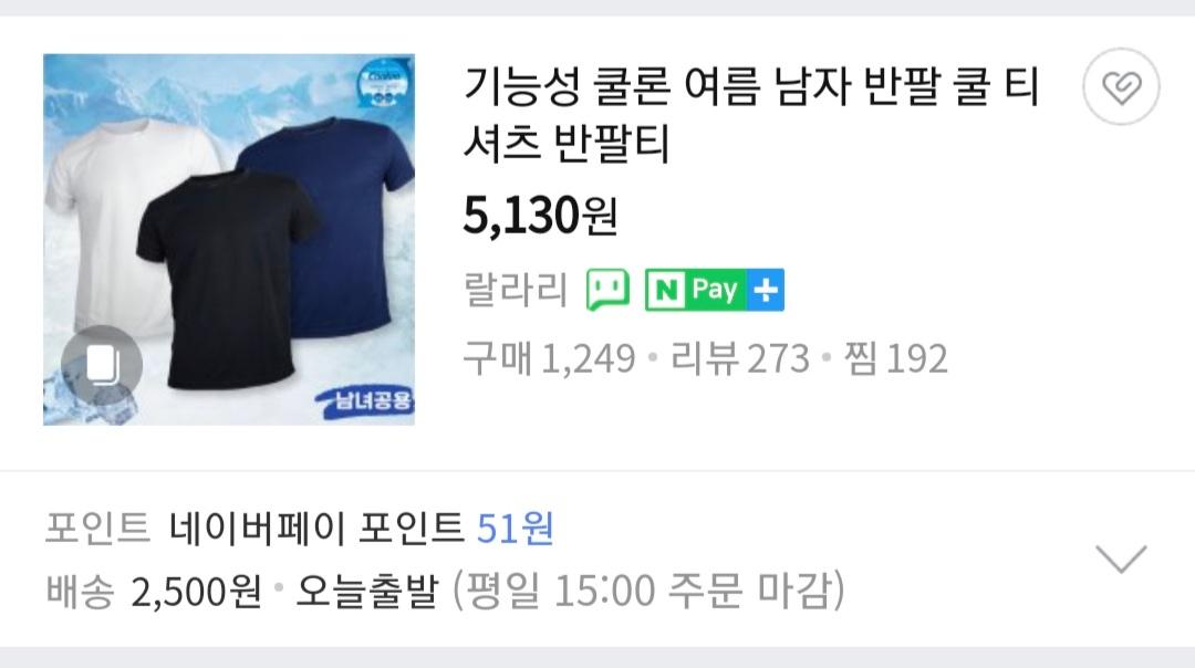 [네이버] 섬유공장집 딸이 아빠 제품만 받아서 운영하는 몰, 기능성 티셔츠 (5,130원)
