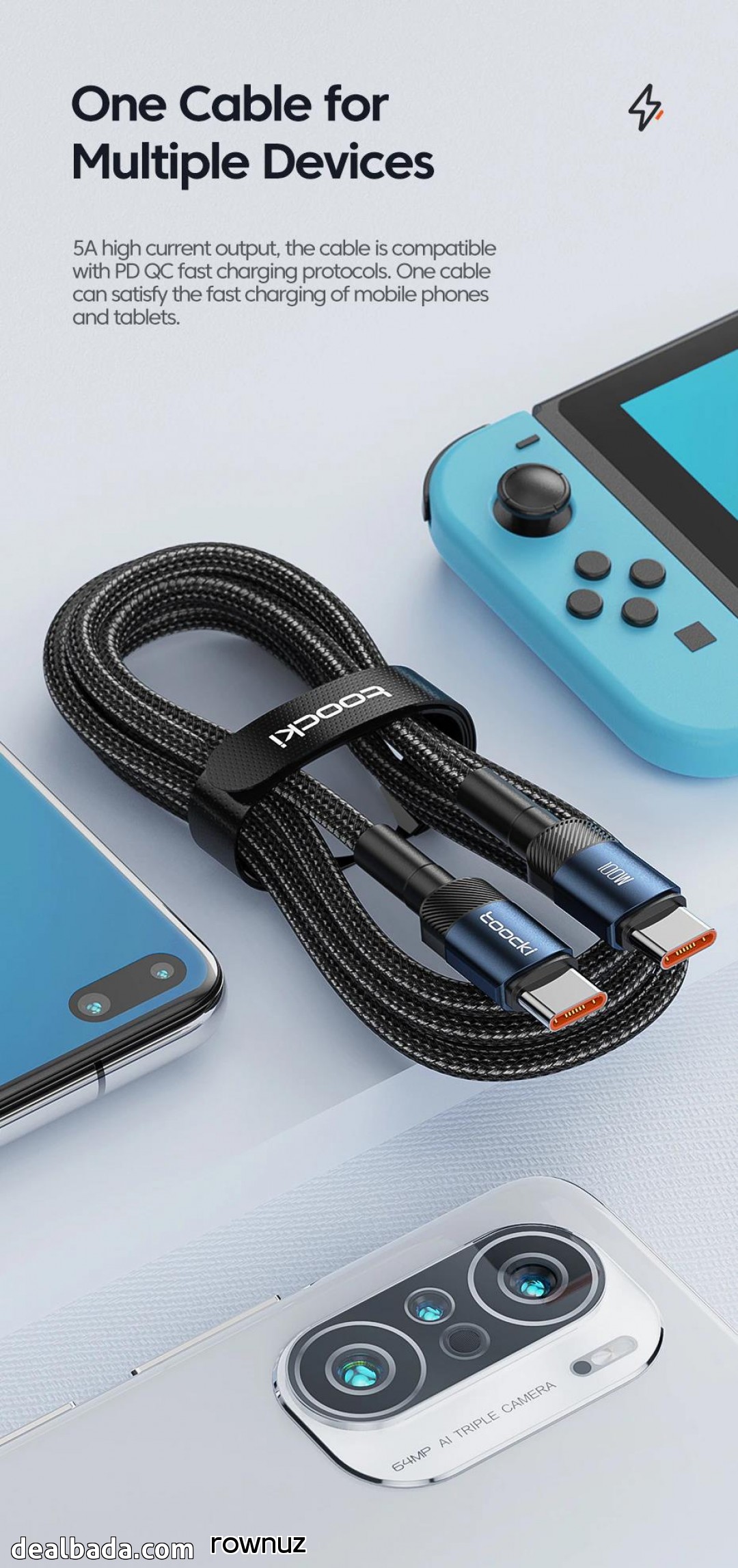 [알리익스프레스] Toocki 100W Type C 고속 충전 케이블 ($0.59/무료) > 상품홍보
