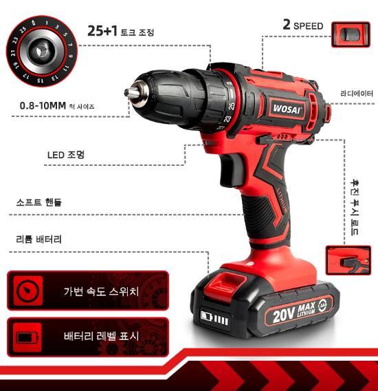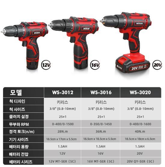 WOSAI- 12V 16V 20V무선 전기 드릴입니다