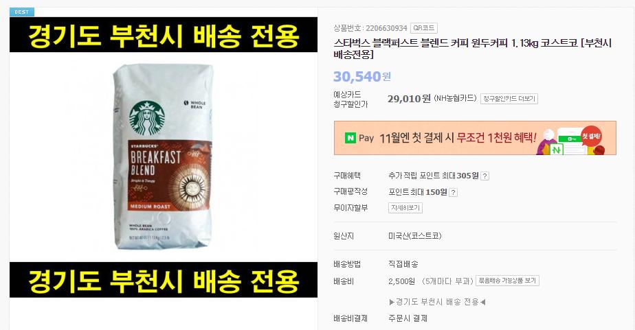 아침을 깨우는 커피!! 스타벅스 블랙퍼스트 블렌드 원두커피를 판매하고 있습니다.