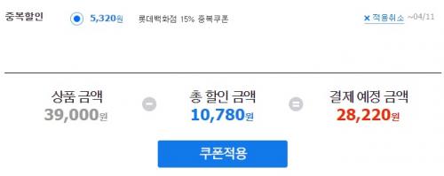 저 쿠폰을 받으시면 이렇게 짠!! 28,220원으로 거의 5,000원 정도 할인된 금액이 나옵니다!!!