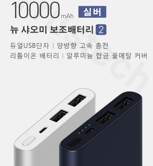 2i는 10000mAh의 배터리이지만 양방향 고속충전 지원되며 usb출력포트도 2개가 달려있습니다.
