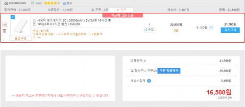 위 쿠폰을 모두 받으셨으면 아래에 상품링크에 가셔서 원하시는 보조배터리를 구입하시면됩니다.