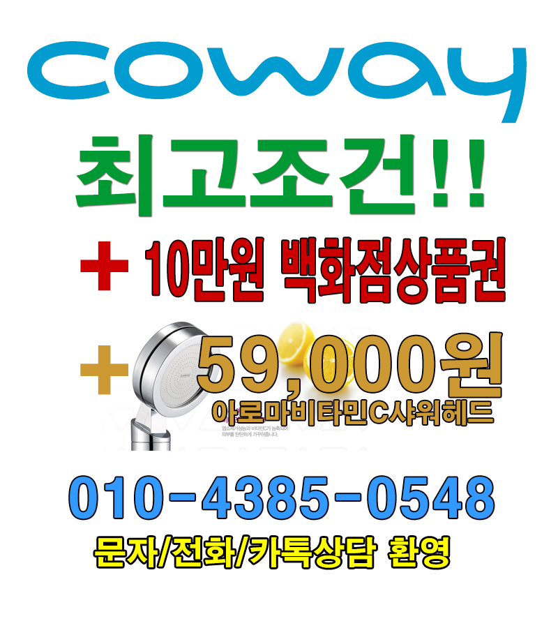 [코웨이] 정수기/ 공기청정기/ 비데 최고조건 +10만원백화점상품권 +5.9만원 아로마비타민샤워헤드 > 상품홍보