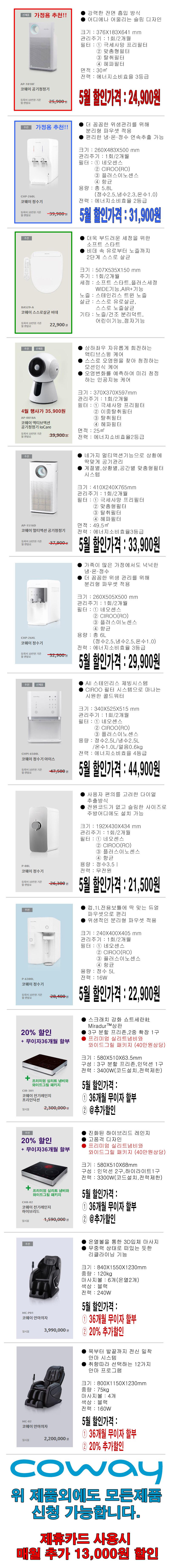 [코웨이]정수기/비데/공기청정기 브랜드1위 안마의자 최대20% 페이백!! > 상품홍보