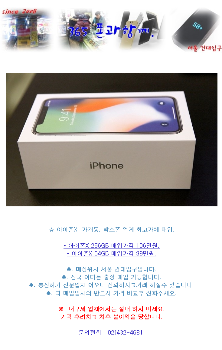 아이폰X 가개통폰 최고가에 삽니다.