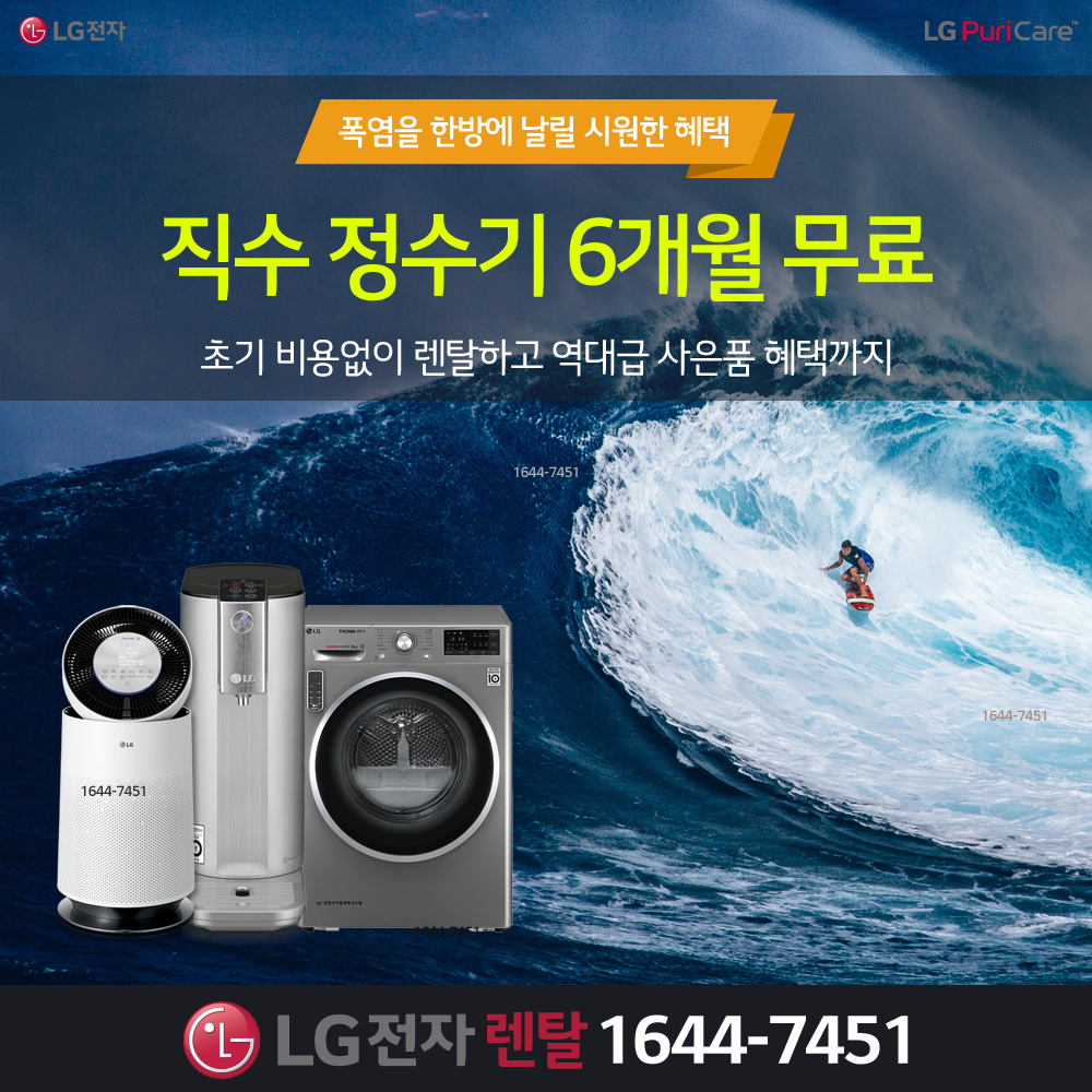 [1등혜택] LG전자! 정수기 6개월무료! 공기청정기 10개월무료! 인덕션 6개월무료! 무조건 최대치 혜택!