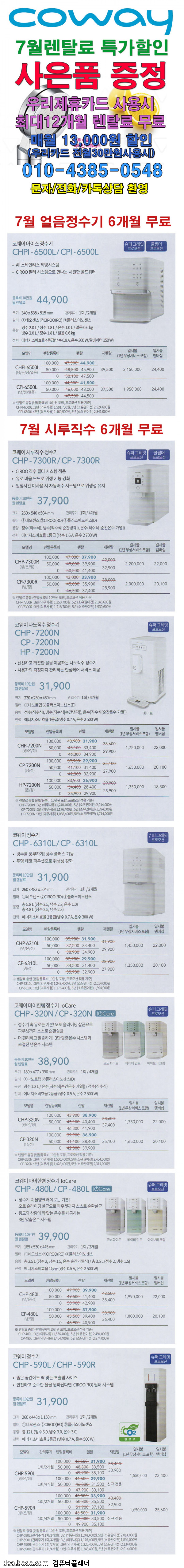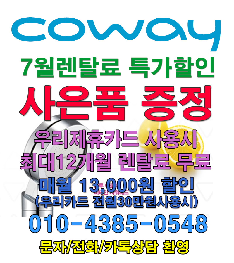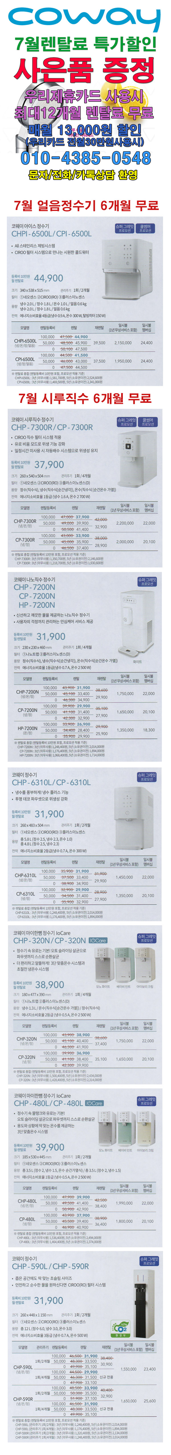 [코웨이] 7월 얼음정수기/시루직수정수기 6개월 렌탈료 무료+@ 행사중입니다. > 상품홍보