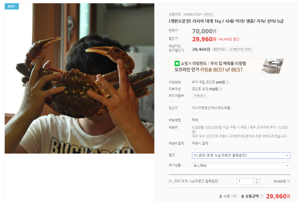 [네이버샵] 러시아 대게 [29960원/ 택비 4000원(5kg이상무배)]