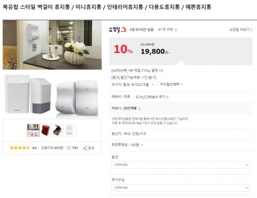 지통으로 사용이 가능한 제품입니다. 현재 반응도 괜찮아서, 이번기회에 욕실 또는 화장대 기타 장소에서 일반 휴지통이 아닌 색다른 상품에 관심이 있었던 분들에게는 흥미있는 상품이 되지 않을까 싶습니다.