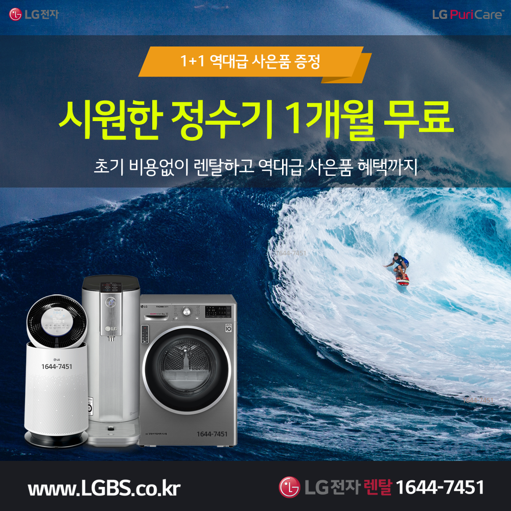 [1등혜택] LG전자! 정수기 1개월무료! 공기청정기 10개월무료! 인덕션 10개월무료! 역대급 사은품!