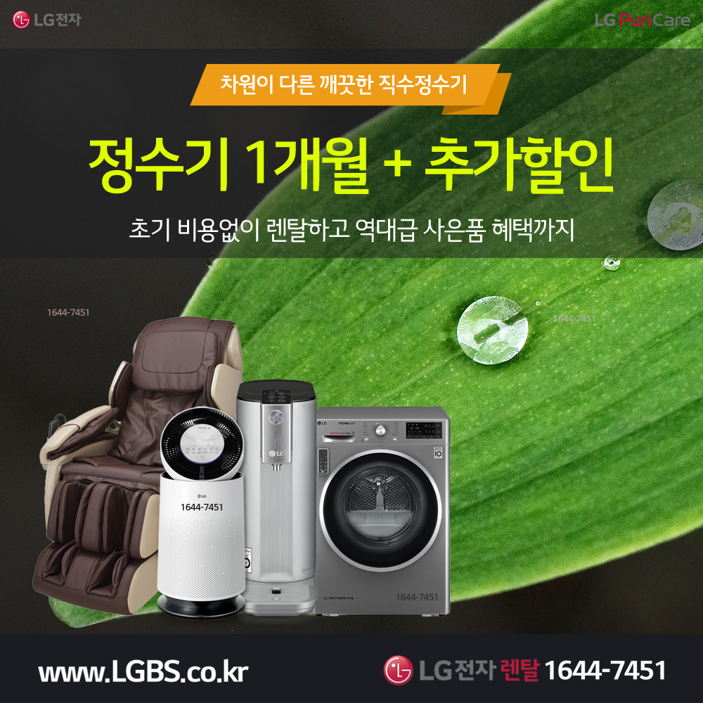 [1등혜택] LG전자! 정수기 1개월무료! 공기청정기 10개월무료! 인덕션 10개월무료! 역대급 사은품!