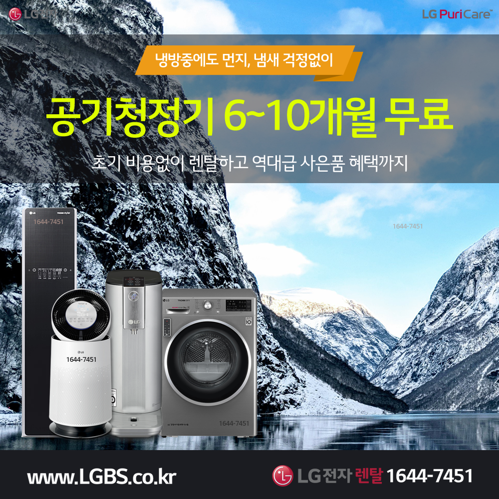 [1등혜택] LG전자! 정수기 1개월무료! 공기청정기 10개월무료! 인덕션 10개월무료! 역대급 사은품!