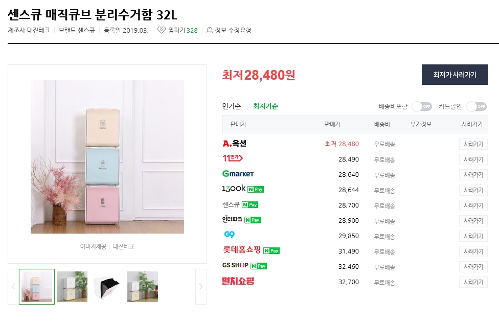 ② 대표품목: [무료배송데이] 1212타임 파스텔 네모 분리수거함