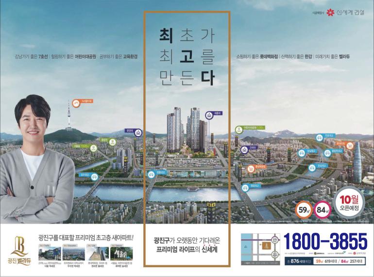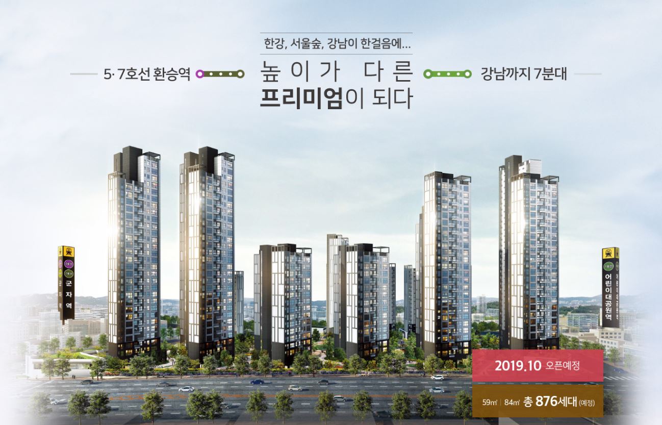 서울시 광진구 군자동 341-17번지 일원에 들어서는 광진 벨라듀는 총 876세대(59㎡A 544세대, 59㎡B 75세대, 84㎡A 125세대, 84㎡B 132세대)로 구성되며 성동과 광진구를 아우르는 희소가치 있는 대단지 고층 아파트로 주목 받고 있다.