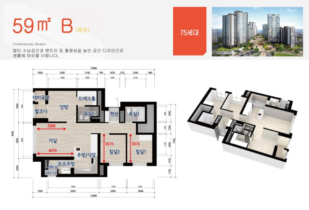 실시간 날씨정보 알림, 층상벽면 배관공법으로 윗집 화장실 소음이 아래층으로 전달되지 않아 보다 편안한 생활을 누릴 수 있으며 온도조절시스템, 대기전력 차단장치, 현관·복도 LED 센서등, 로이유리 창호 등 고효율에너지 절감 시스템도 돋보인다.