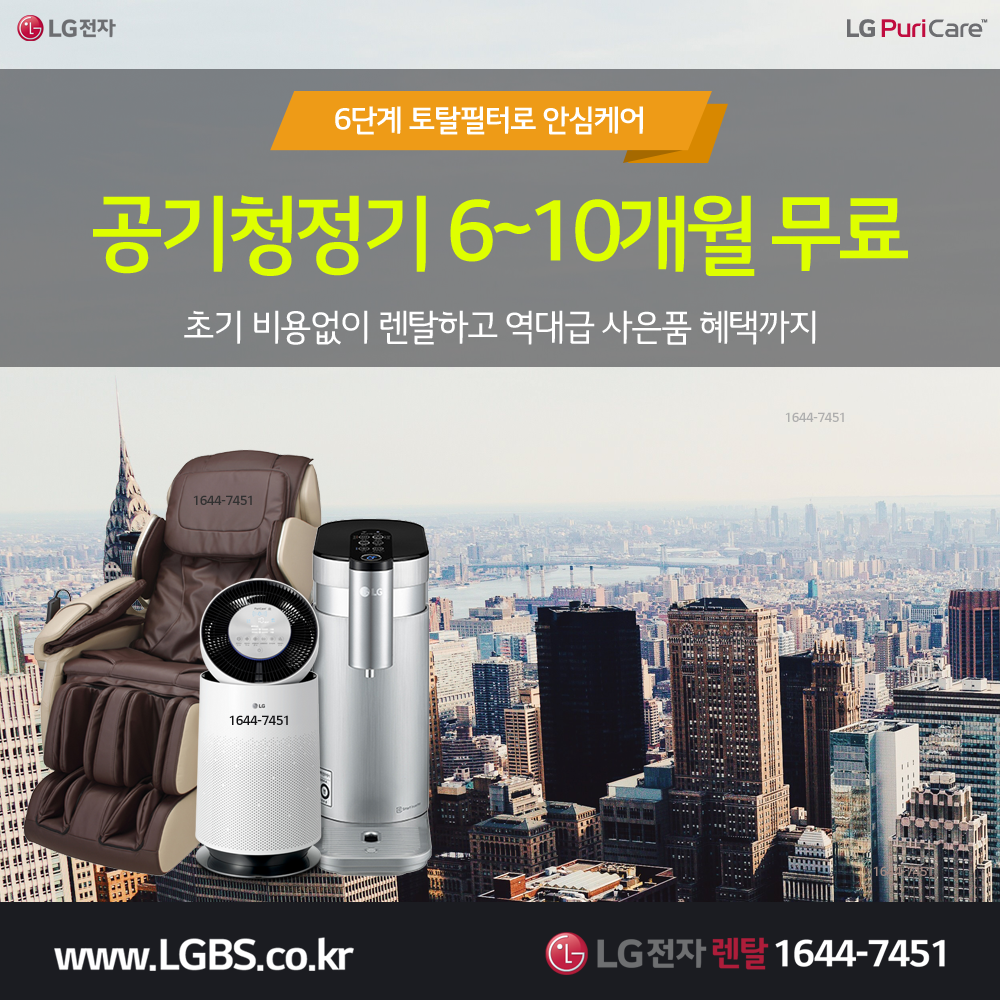 [1등혜택] LG전자! 정수기 3개월무료! 공기청정기 10개월무료! 인덕션 10개월무료! 역대급 사은품!