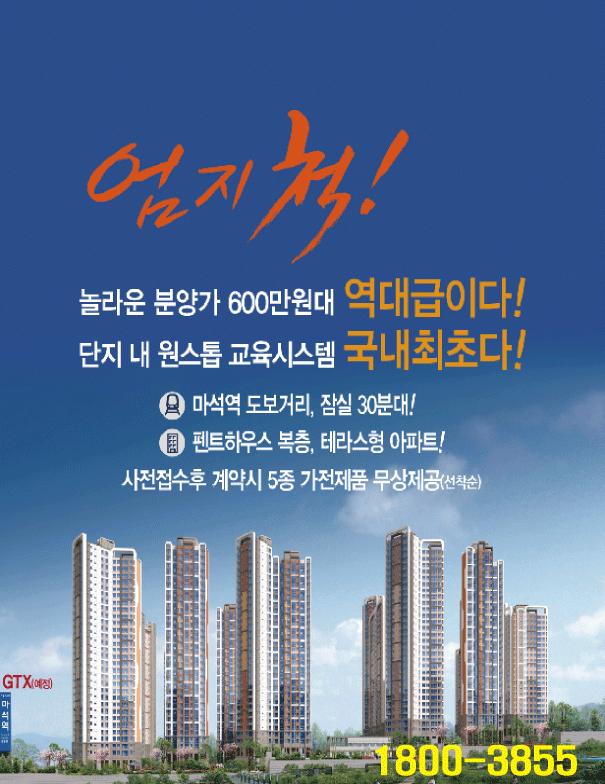 펜트하우스형 복층아파트로 조성되는 마석역 쌍용 에듀파크는 마석역 도보거리에 위치하며 잠실역까지 30분대에 접근할 수 있어 많은 관심을 집중시키고 있다.