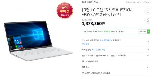 [지마켓] LG전자 15인치 노트북 15Z90N-VR3YK (1,190,000원/무배) > 상품홍보