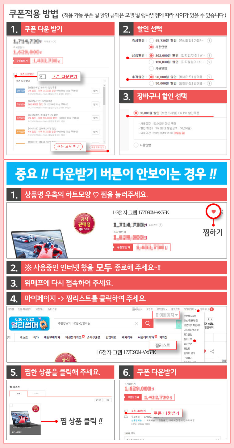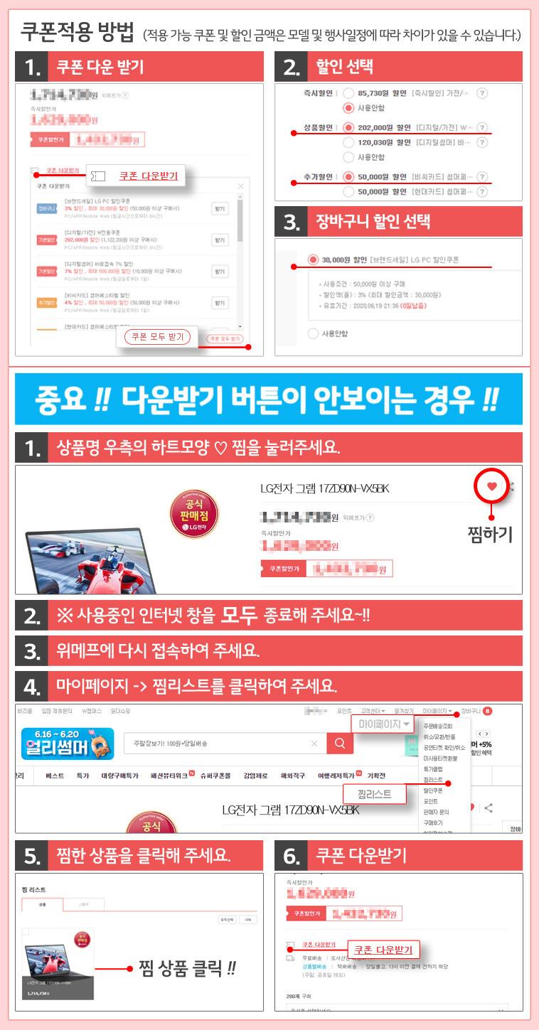 쿠폰 할인 적용 방법은 아래의 이미지를 참고해 주세요