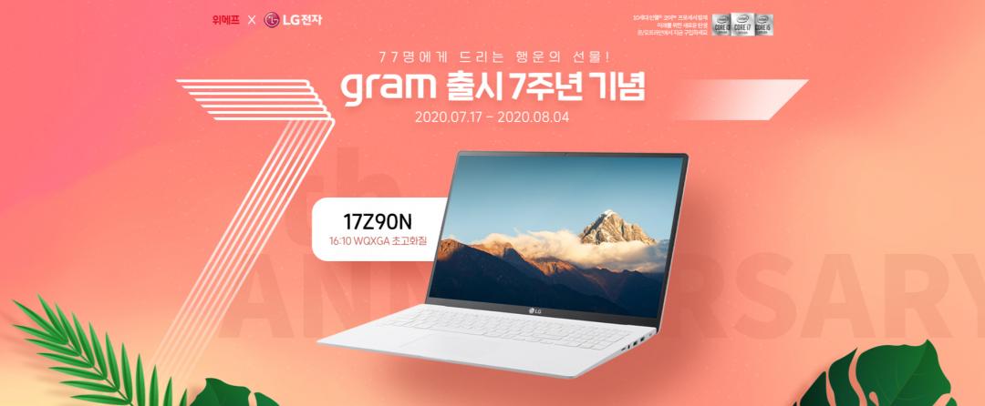 LG 노트북 '그램(gram)' 출시 7주년을 기념해 고객 감사 이벤트를 진행합니다.