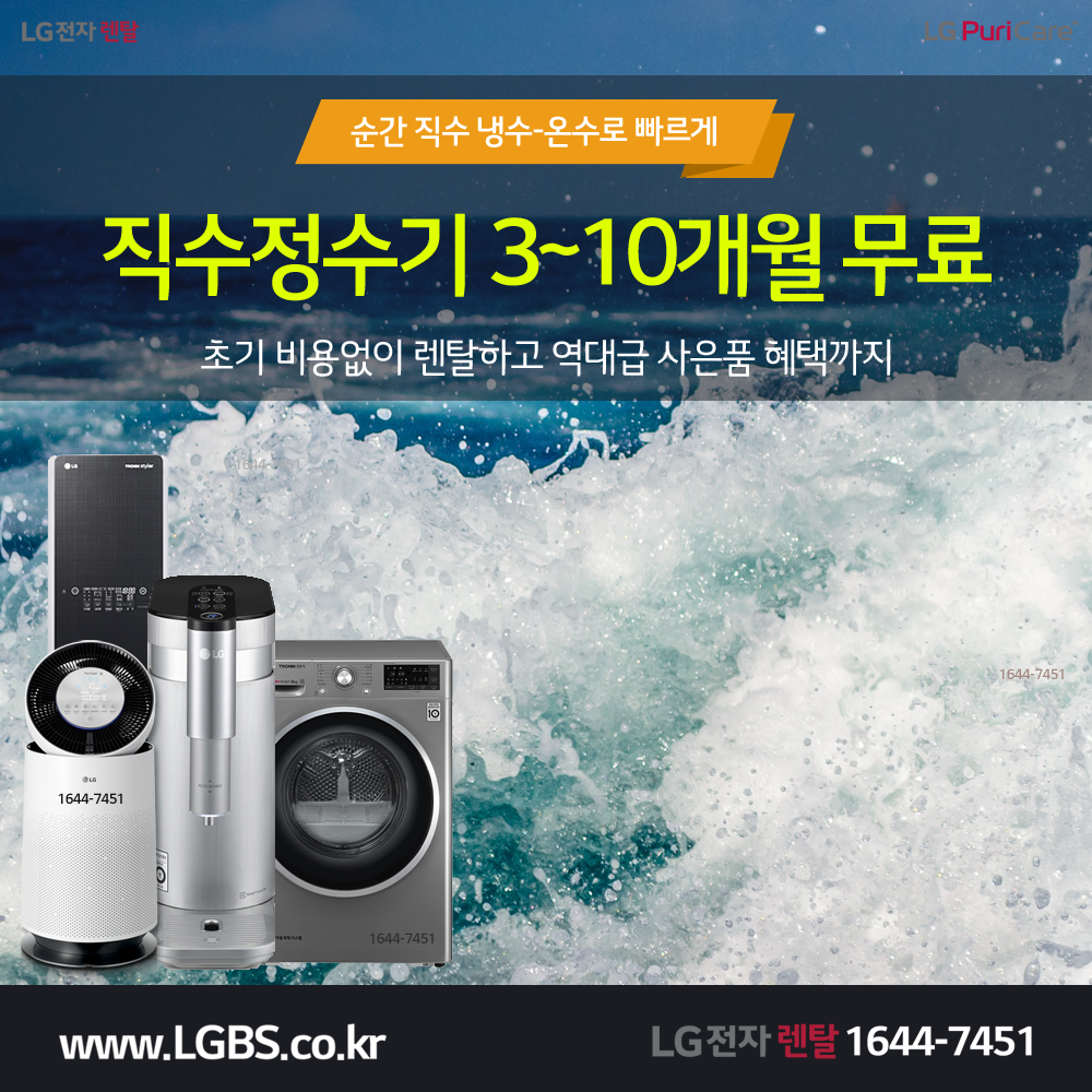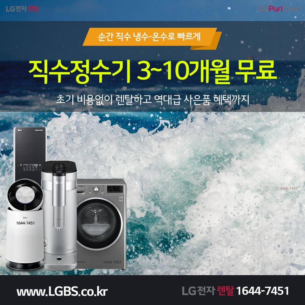 - 직수정수기 3~10개월 무료 / 장기할인 (3개월 방문케어, 매년 직수관 무상교체)