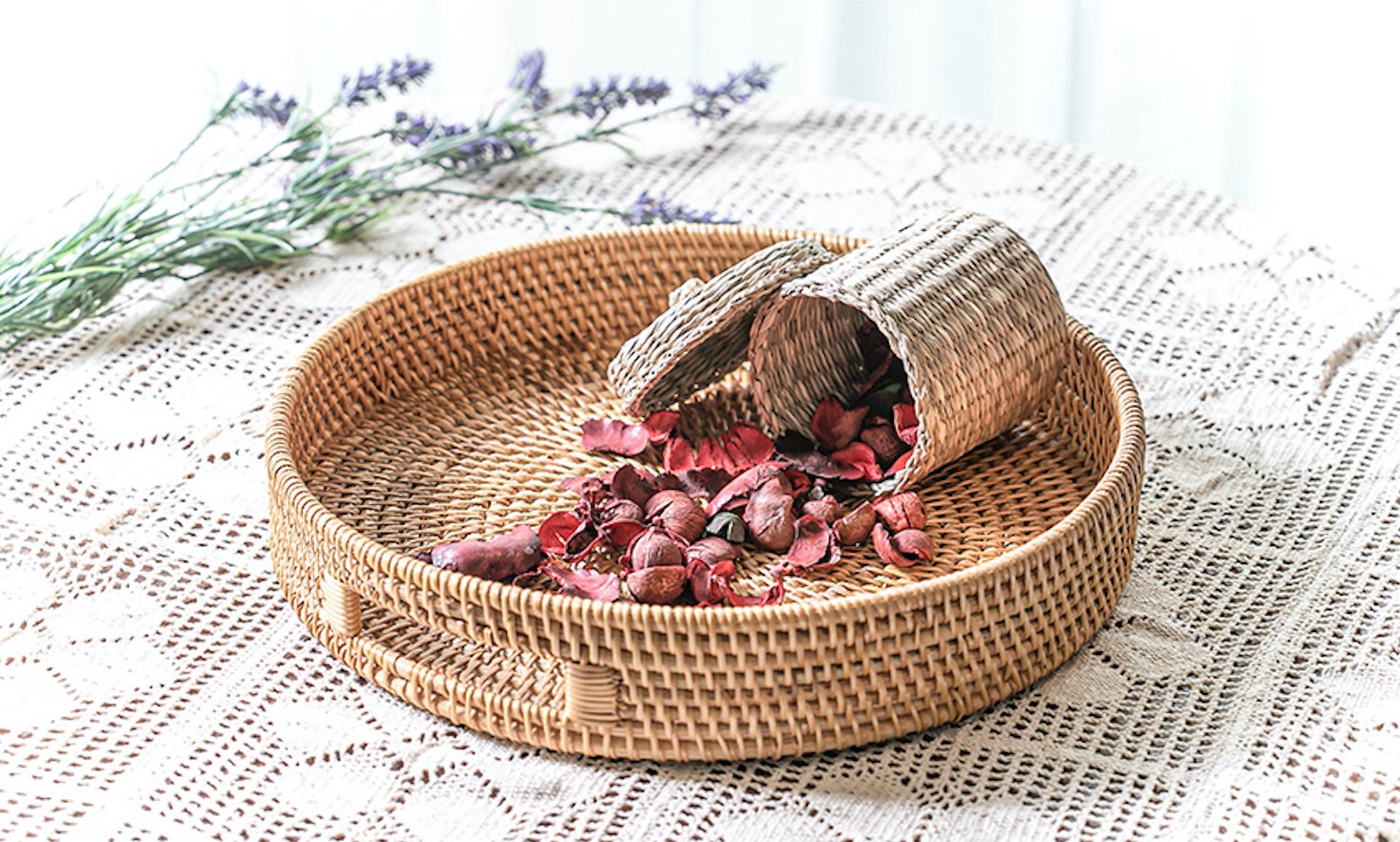 고풍스러운 분위기와 라탄의 짜임을 보시면, 이런 트레이 하나만으로도 이렇게 분위기를 낼 수 있구나 하실거에요 ㅎㅎ