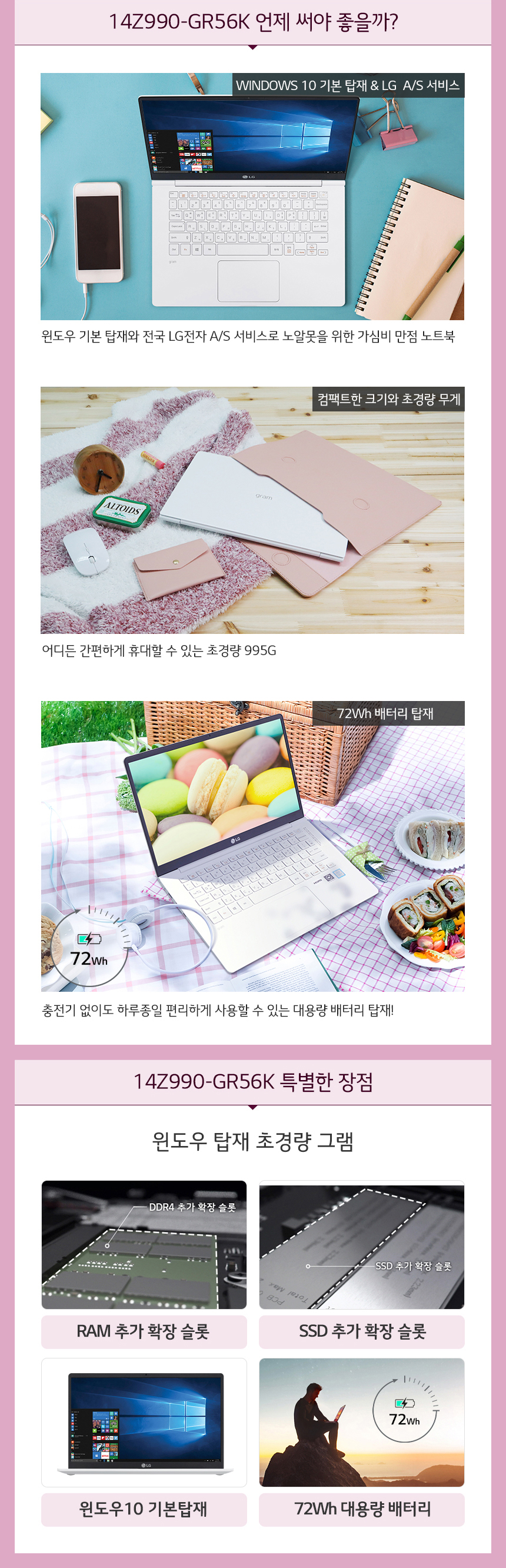 어디든 간편하게 휴대할 수 있는 999g 초경량 14인치 LG그램까지