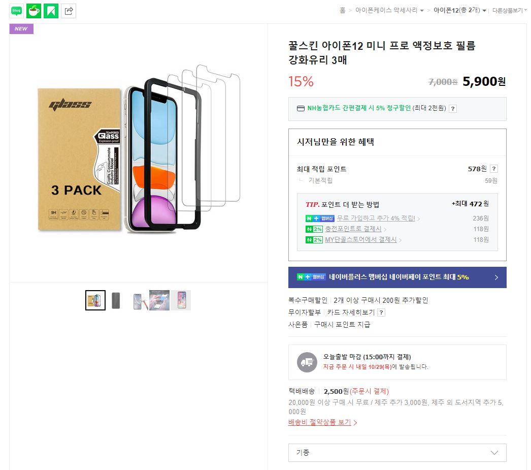 [네이버] 아이폰12/미니/프로 올투명강화유리 3매+부착툴 (5900/2500) > 상품홍보