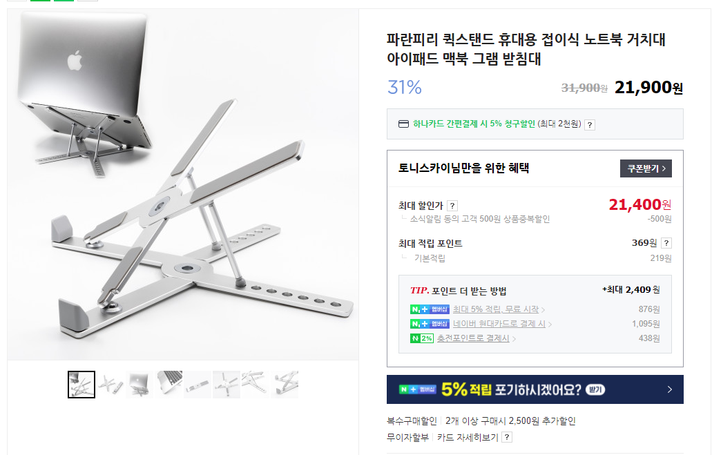 노트북 쓰신다면 거치대는 필수인 것 같아요.