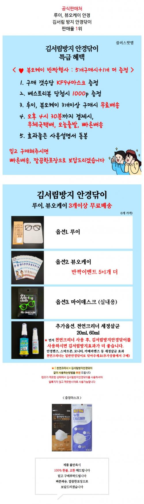 그리고 사은품으로 김서림방지안경닦이 구매수량마다 KF94마스크도 증정해드리고 있습니다