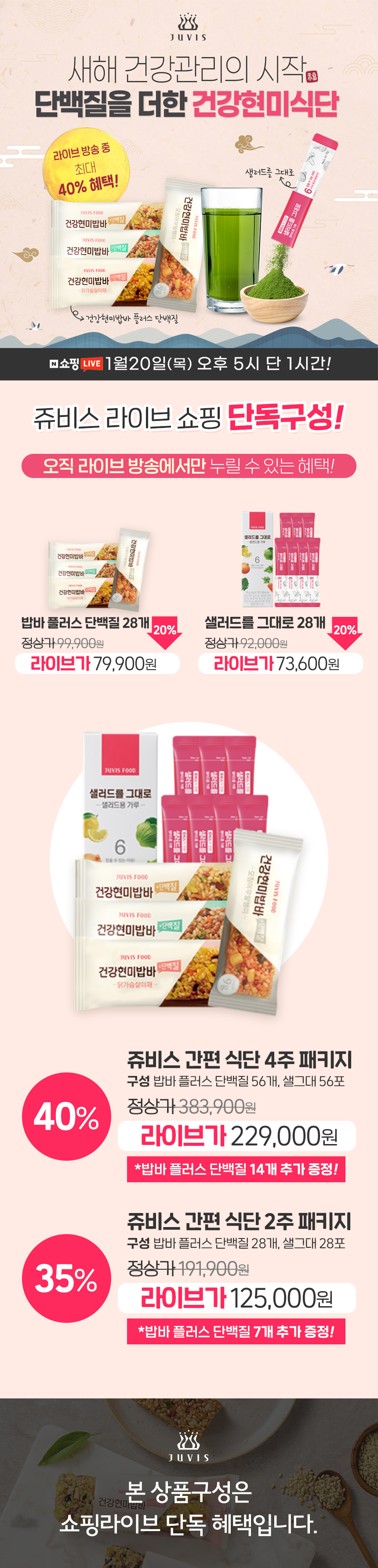 [네이버]쇼핑라이브 쥬비스 건강현미식단 패키지 (73,600~/무배) > 상품홍보