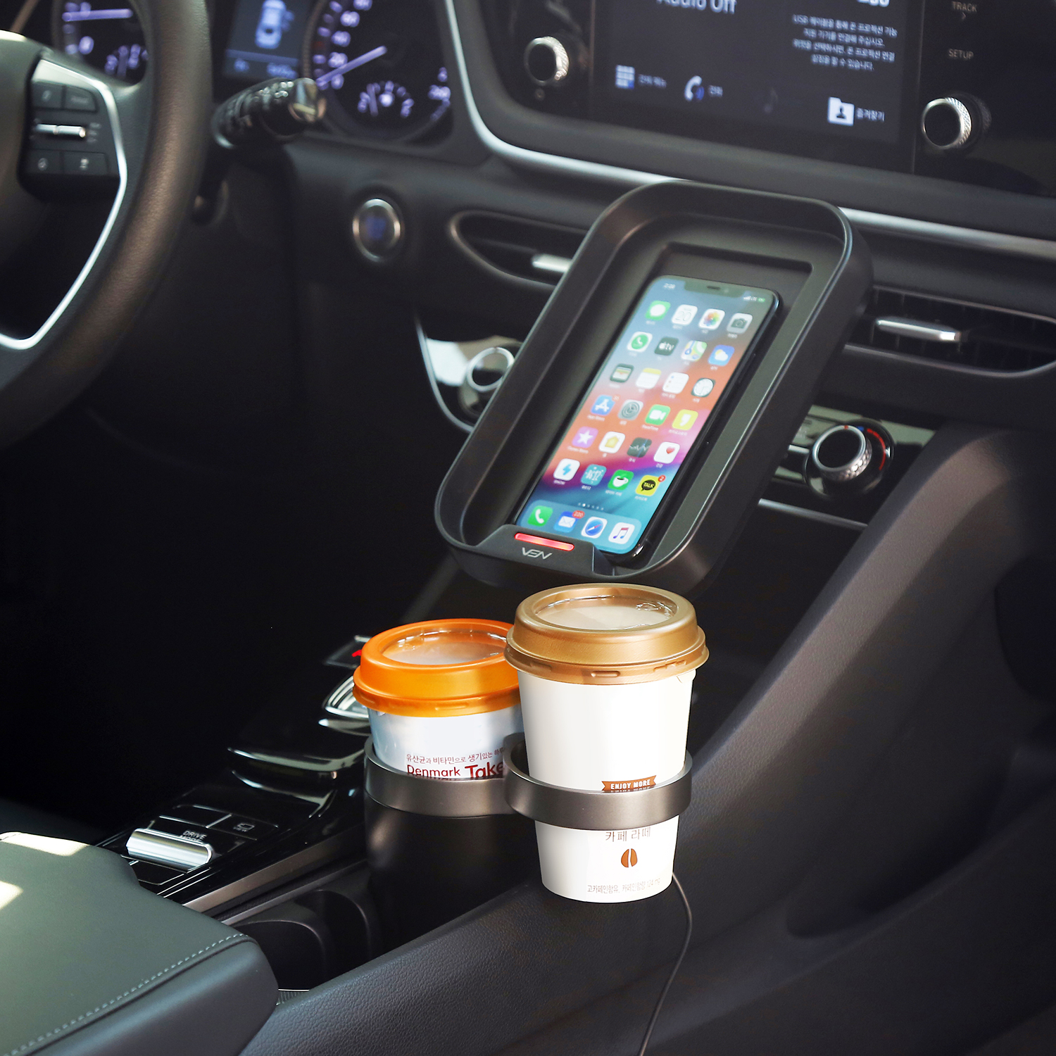 컵홀더 + 트레이 + 휴대폰거치대 + 무선충전이 하나로 !