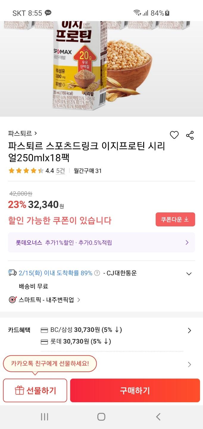[롯데ON] 파스퇴르 스포츠드링크 이지프로틴 시리얼250mlx18팩최대혜택가 30,723원