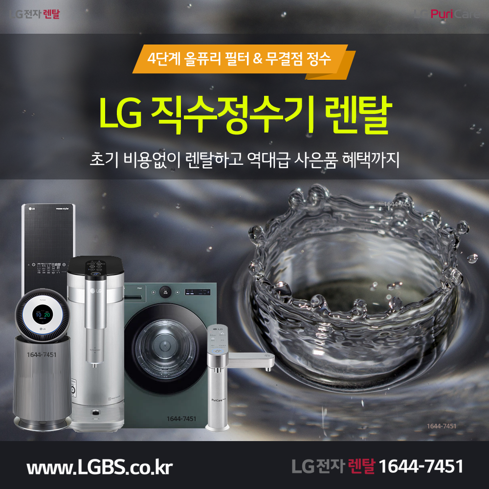 [1등혜택] LG전자! 정수기 6개월무료! 공기청정기 요금할인! 상품권 프로모션! 역대급 사은품!