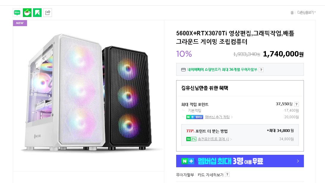 네이버 포인트도 주고 영끌도 하면 상당히 저렴하게 구매가 가능한거같네요.